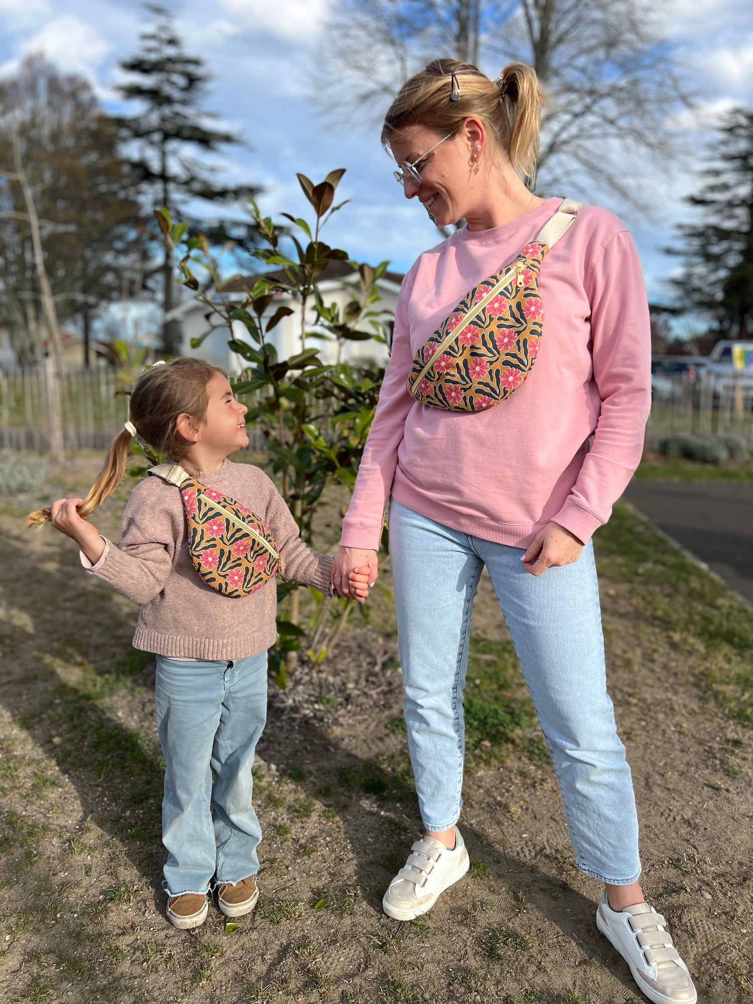 Tu choisis les tissus, la doublure, le zip → elle assemble tout avec soin.